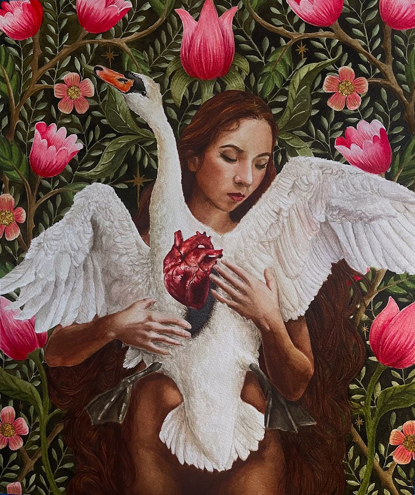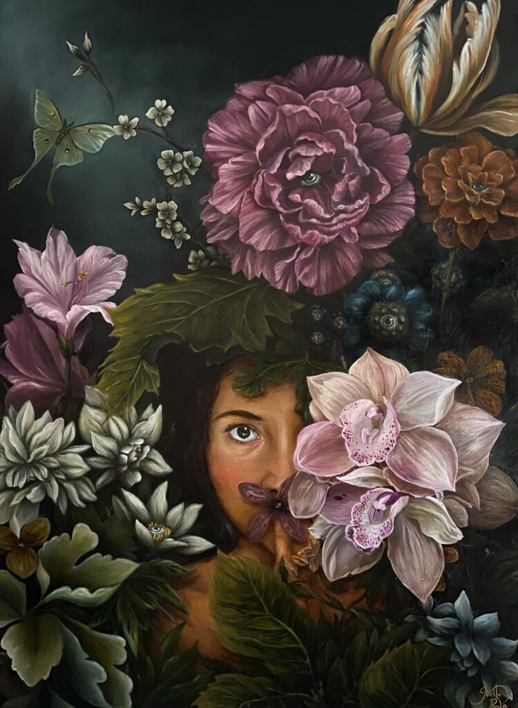 Ivette recuerda su infancia: padres que dibujaban, horas de observación silenciosa, cuadernos llenos de líneas y rostros, la música que la llevó a explorar el canto y el arpa, pero que nunca la alejó del trazo. Incluso cuando la vida la trasladó a otros caminos, tatuar fue otra forma de mantener la conexión con el dibujo, con la creación. La pintura siempre estuvo ahí, como un hilo subterráneo, como un latido que aguardaba el momento para emerger.