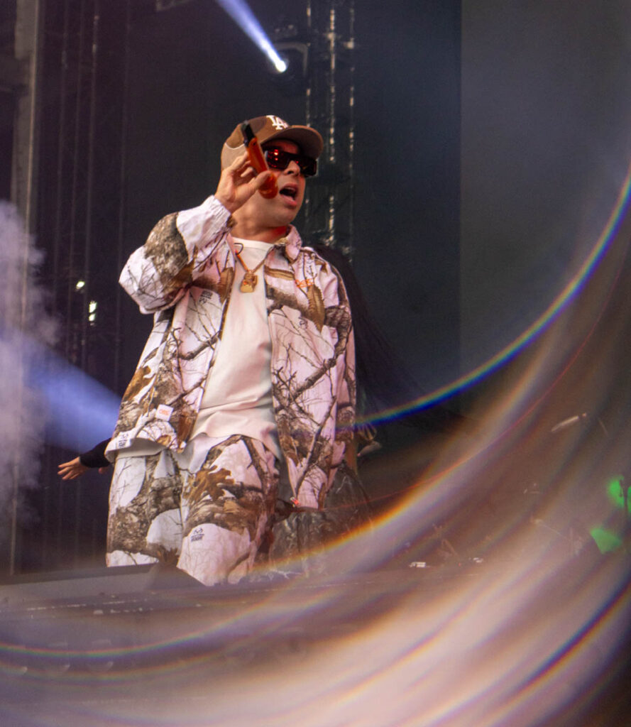 La jornada arrancó en la carpa Little Caesars con Planta Industrial. El ambiente se encendió rápido: slam, cerveza volando, olor a marihuana y un público completamente metido. De ahí tocó moverse al escenario Amazon con MC Davo, donde varios temas conectaron con la gente que creció escuchándolo. La aparición de Sabino detuvo todo por un momento.